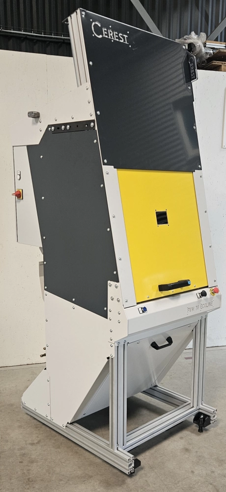 L’operateur charge manuellement le fond et la bride, puis ferme la porte verticale manuellement.